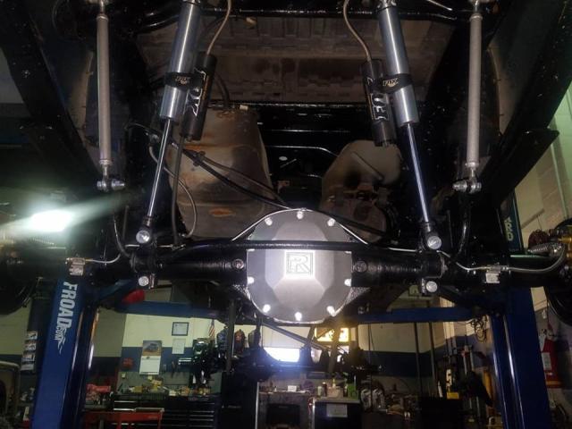 Axles: front dana 44 high pinion with 5/8 wall tubes, chevy flat top knuckles and ford spindles, dettroit locker 4:88 gears chromolly shafts and warn hubs. Rear axle factory 8.8 with 4:88 and limited slip, terflex disc brake conversion and yukon clip eliminator chromolly shafts