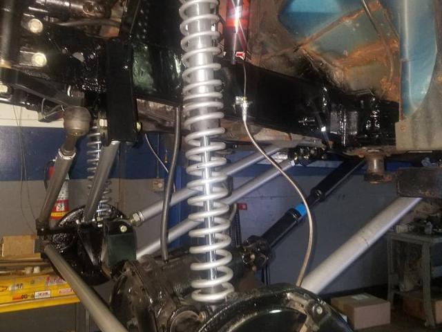 Suspension: front is a custom 3 link on fox 2.0 coilovers with 14 inch travel tuned by accutune, rear is spring over axle swap with fox smoothie shocks, custom rear sway bar links