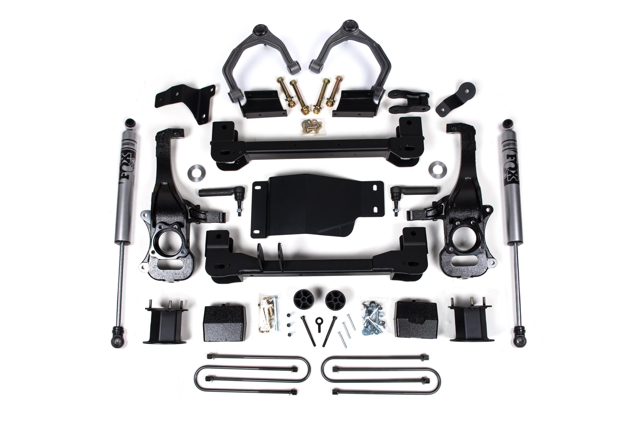 Kits include everything needed from high strength crossmembers and steering knuckles to strut spacers, upper control arms and differential relocation brackets to maintain driveline angles.