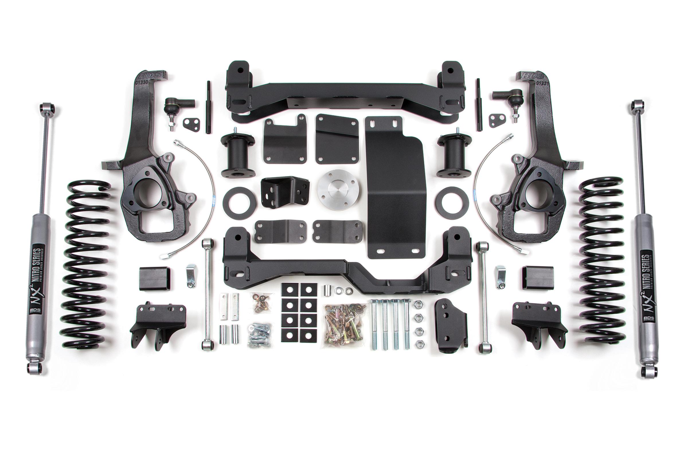 This kit takes advantage of BDS's tried and true high-clearance design for improved ground clearance, strength, and offroad protection while correcting suspension and steering geometry for great on-road handling characteristics.