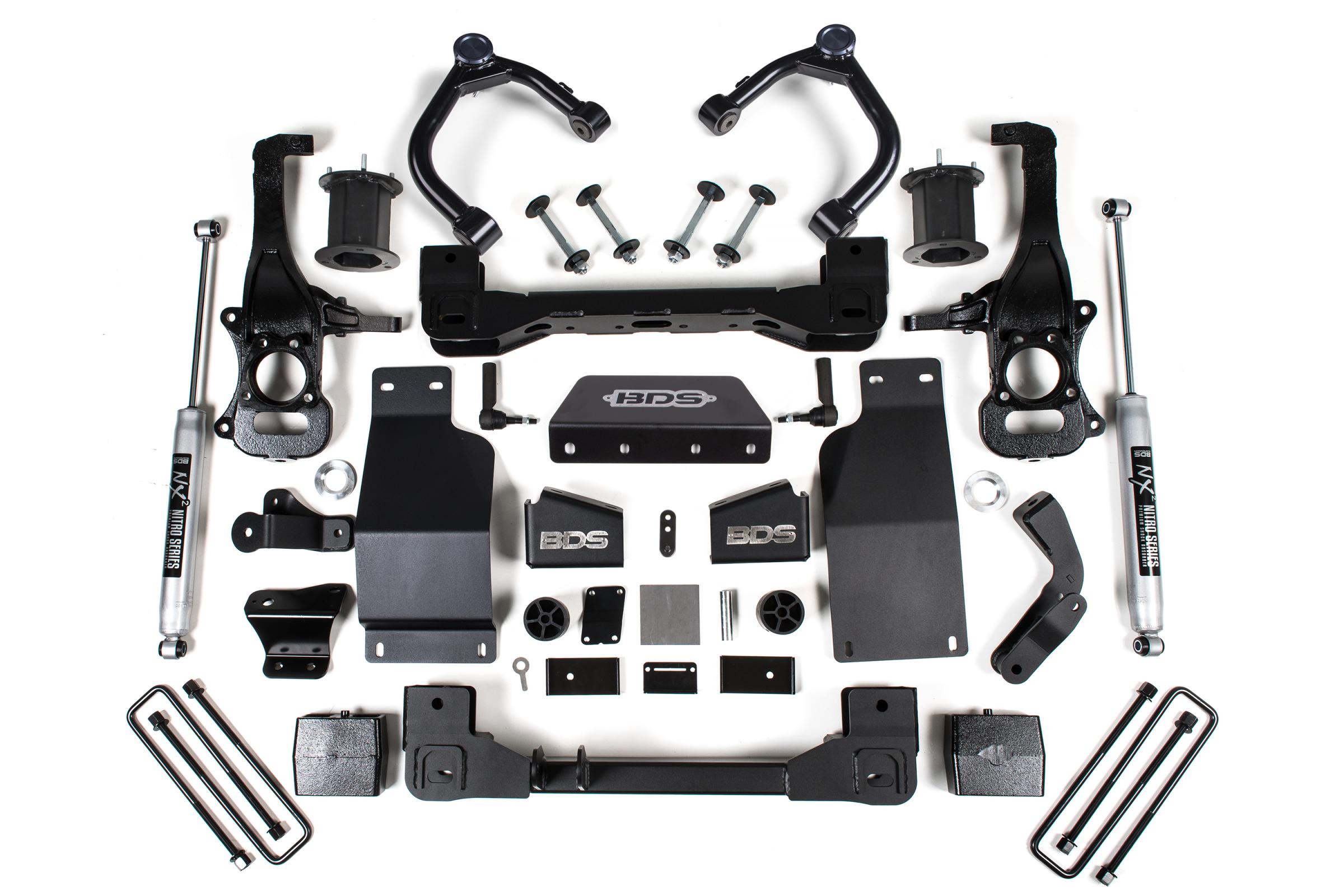 BDS steps up the performance and capability of the Chevy Silverado and GMC Sierra 1500 trucks with 6-inch suspension lift kit. Designed to improve stance, performance, and capability, this kit includes everything necessary to set your truck up right with clearance for up to 35 inch Tires