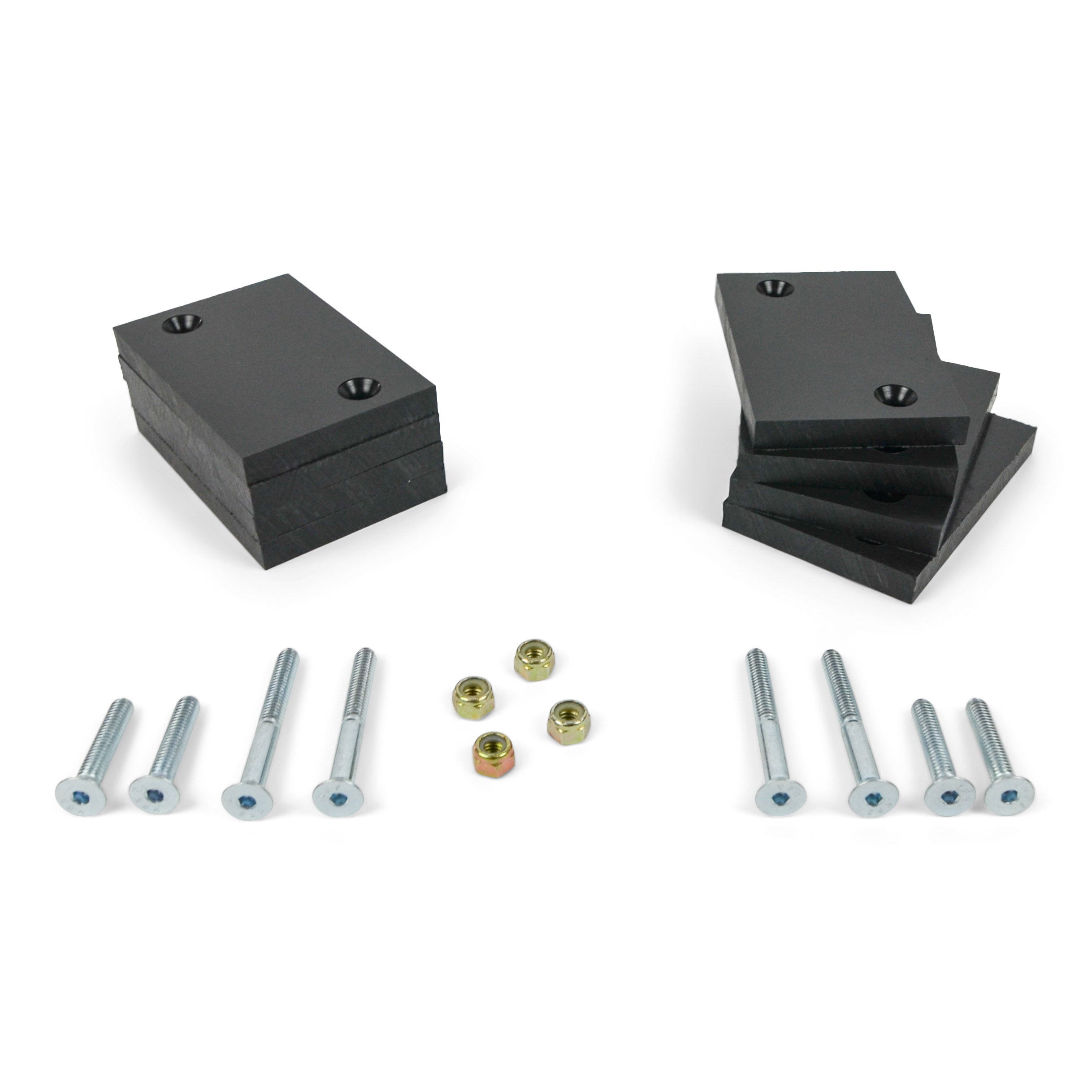 The Jeep Gladiator Jt rear bump stop extension kit allows you to adjust your rear up travel in conjunction with our 1 Inch or 3 Inch bump stops. This kit comes with eight (8) total 1/2 spacers, eight (8) bolts, and four (4) nuts which allows you to add 1/2 Inch, 1 Inch, 1 1/2 Inch or up to 2 Inch of additional bump stop.