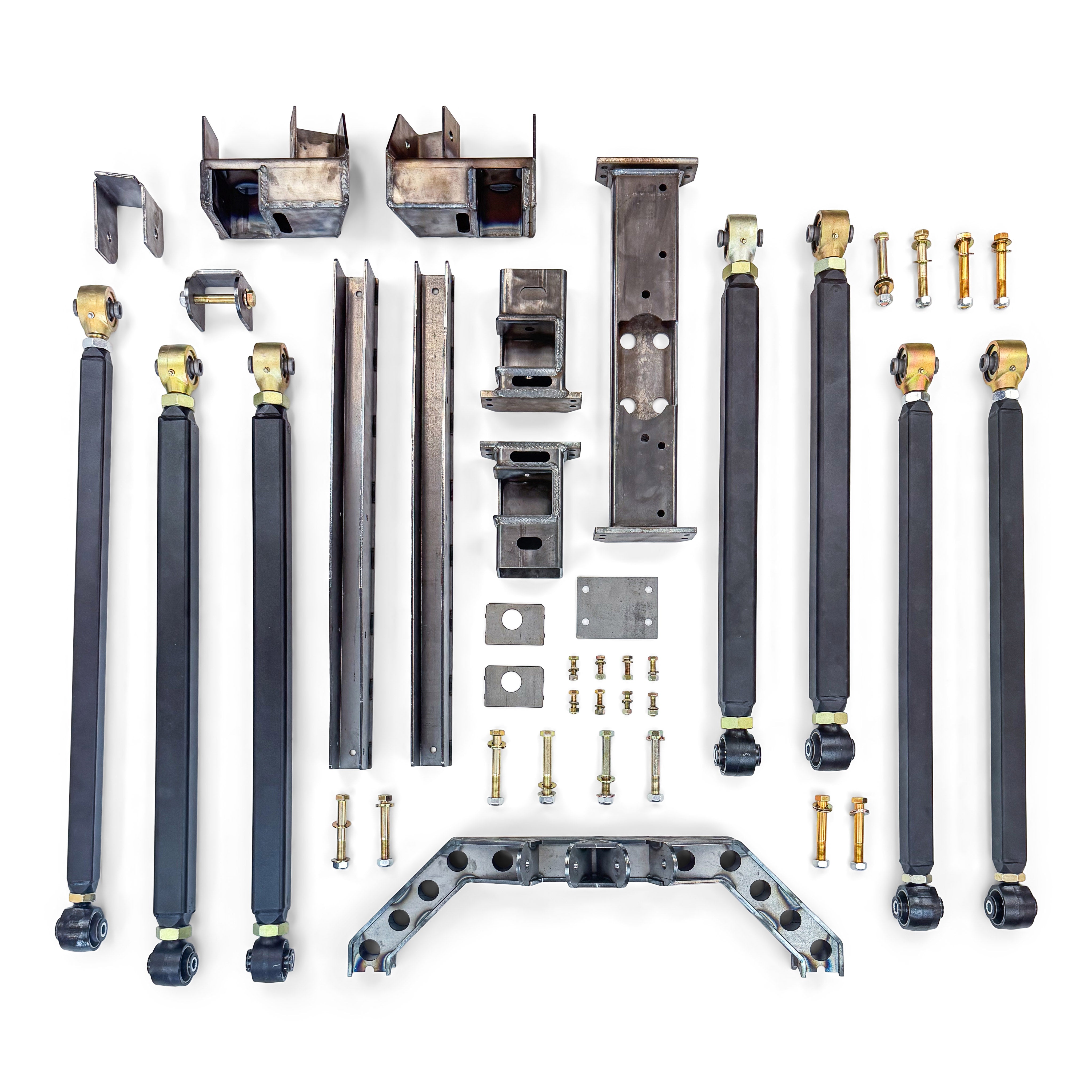 - Weld-on brackets for a secure 3-link upper arm mount.