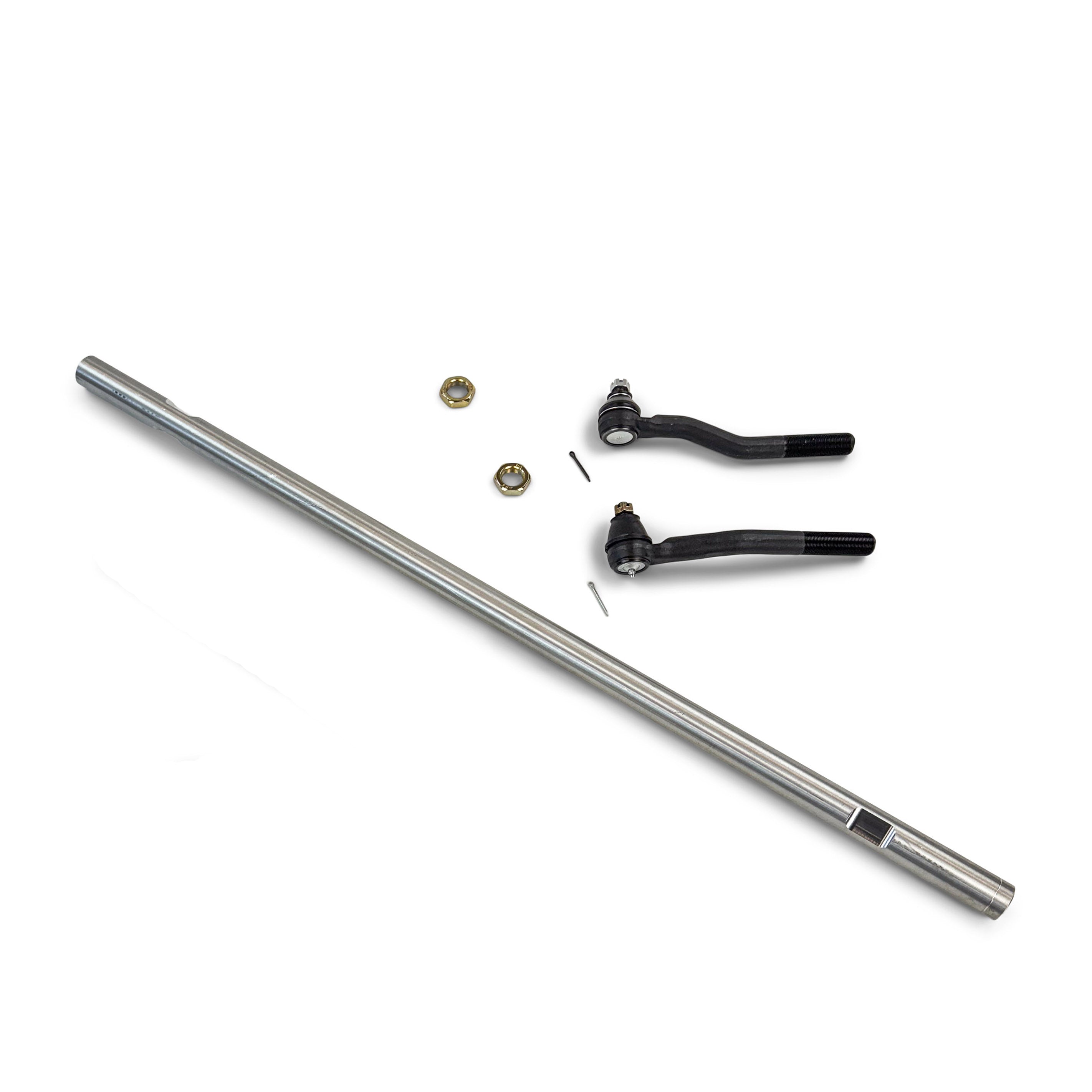 Simplicity is achieved by making this a 100 percent bolt in system. Just unbolt your factory tie rod, and bolt our heavy duty aluminum version in.