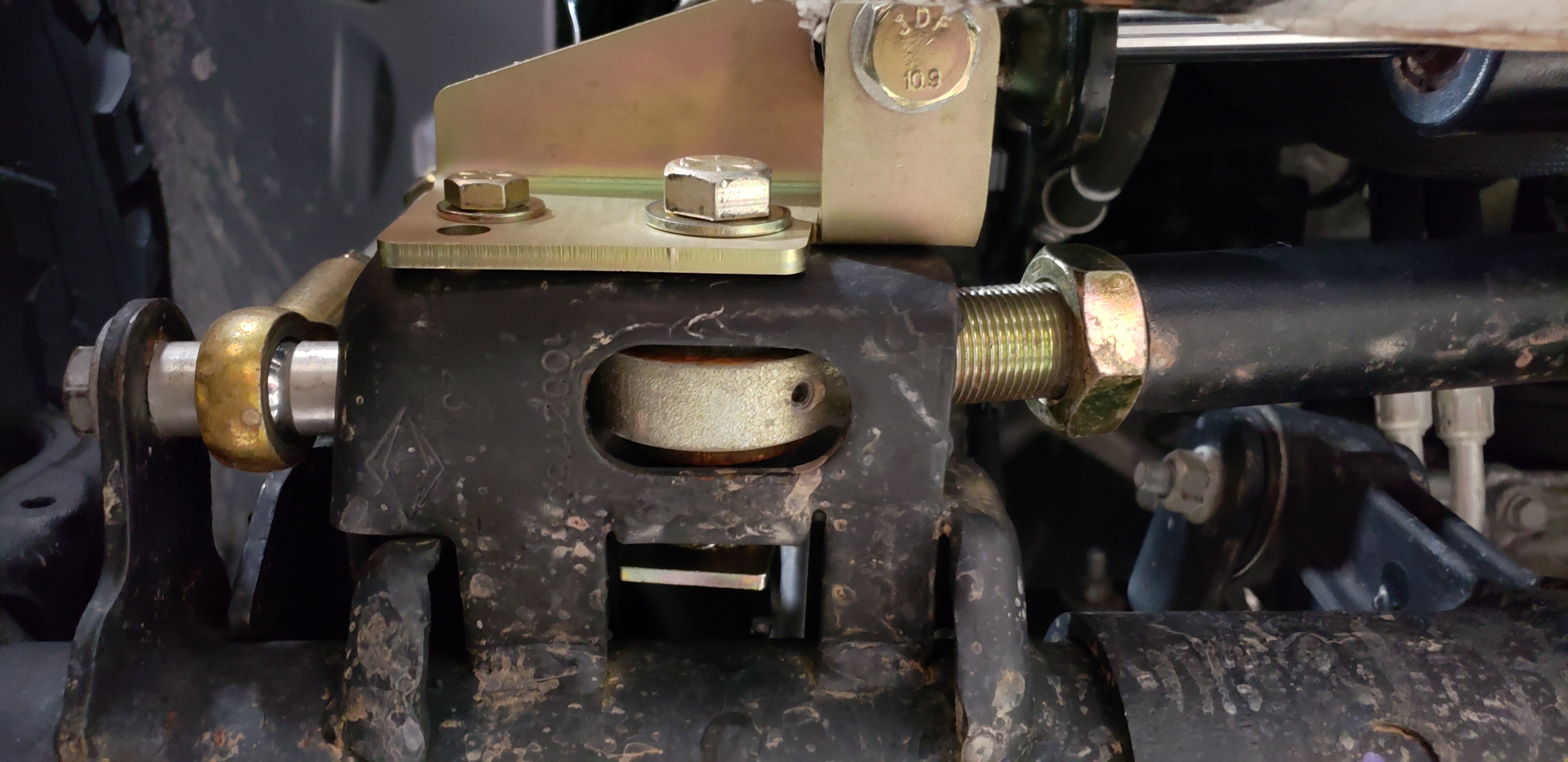 This is a simple bolt on 3/16s thick, gold zinc plated, double sheer bracket. It includes Grade 8 Hardware to properly clamp our new CNC laser cut and bent bracket to your factory axle mount.