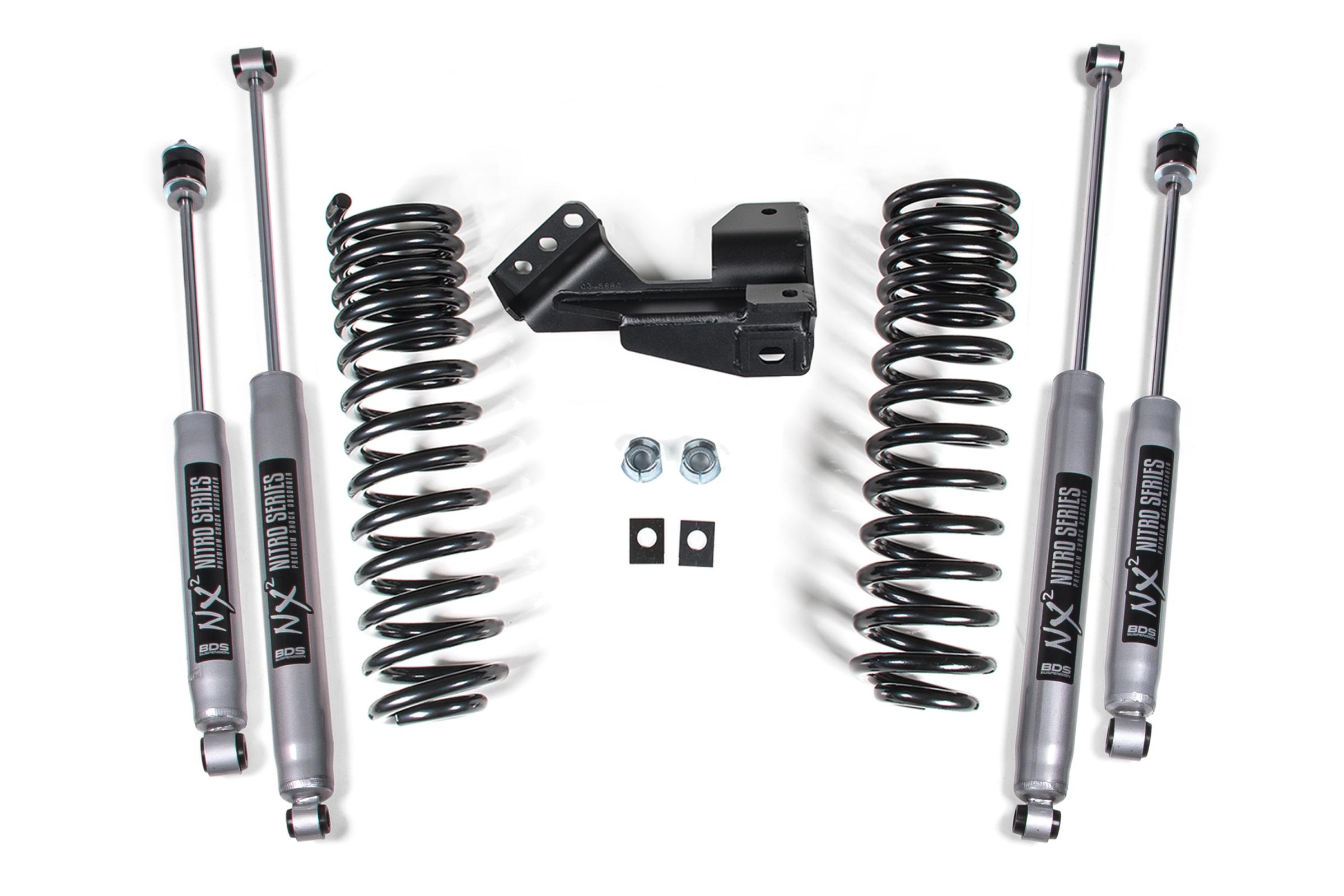 Simply level out your Ford F250 and F350 Super Duty truck to the next level with this performance spring 2-inch leveling kit from BDS Suspension. Designed to improve stance, performance, and capability, this kit includes everything necessary to set your truck up right with clearance for up to 35 inch Tires.