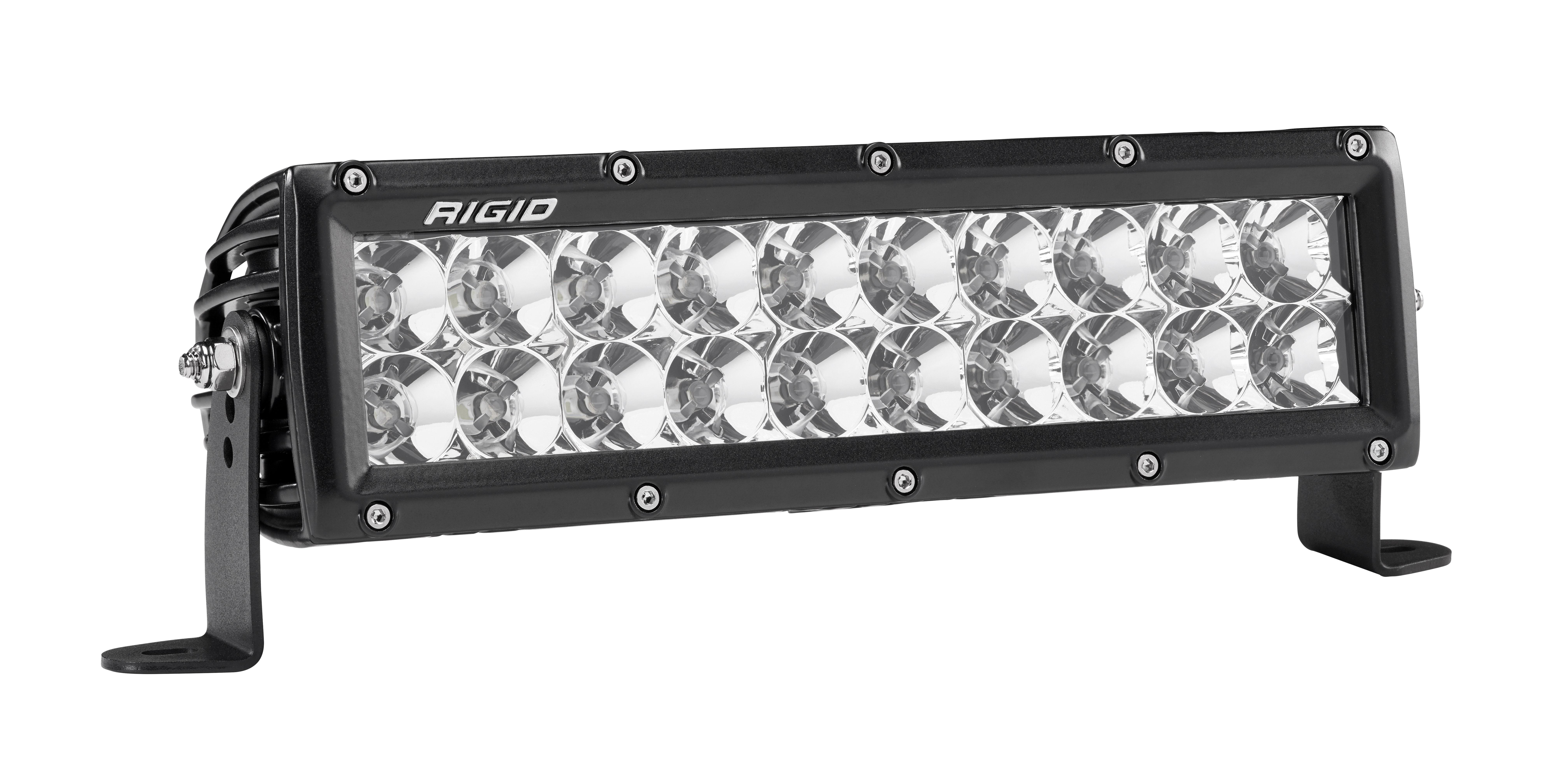 These and other innovations make it one of the brightest and most efficient LED light bars on the market. The E-Series was born in off-road, but its versatility makes it well suited for use with power sports, marine, general automotive and even first responder applications. Own The Night with RIGIDs E-Series double row LED light bar.