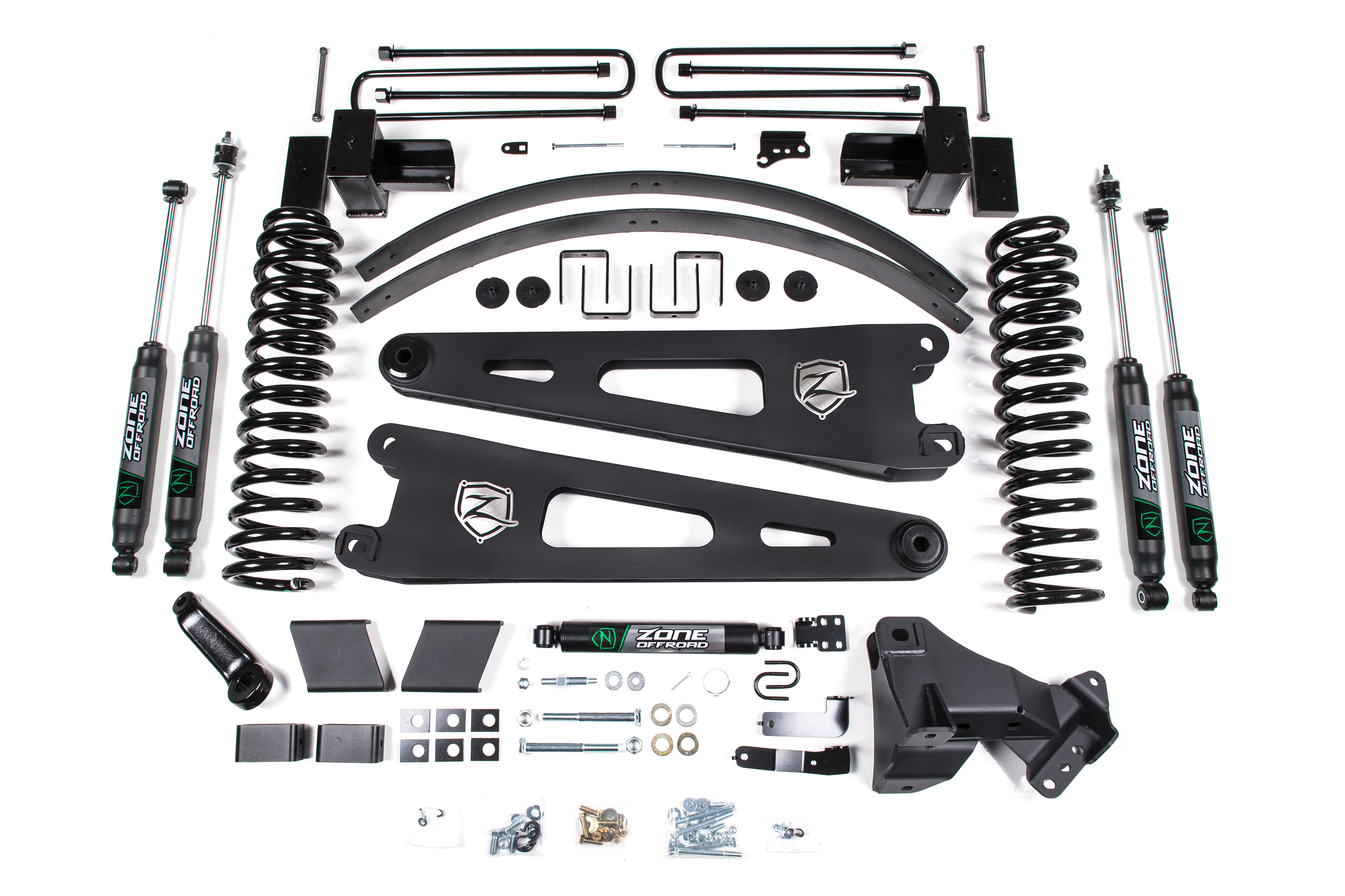Take your Super Duty to new heights with this 6 Inch lift kit from Zone Offroad. Kits include everything needed from full length coil springs and stout radius arms to steering correction and rear lift to level the stance.