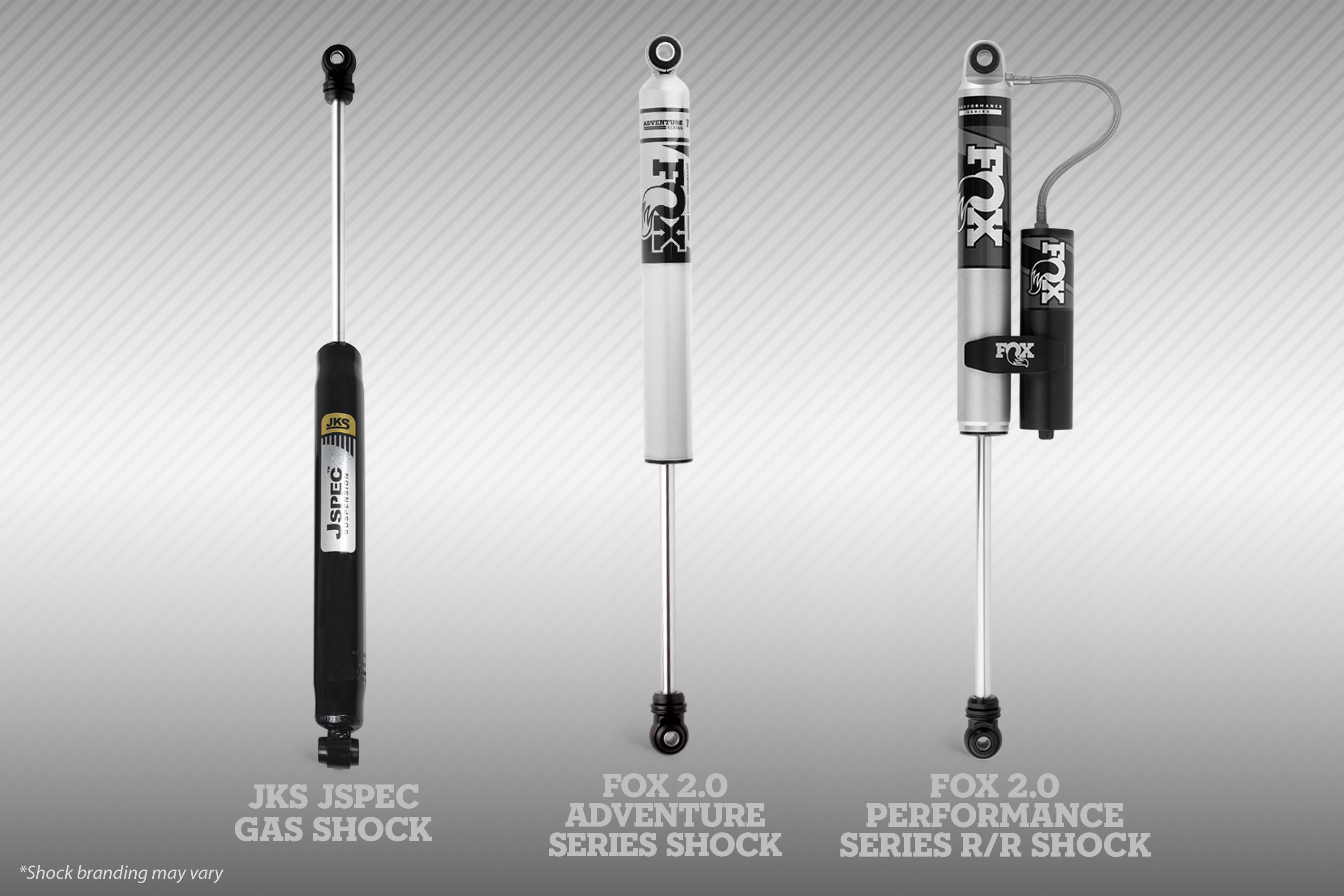 - JSPEC Custom Valve Gas Shocks or FOX 2.0 Adventure Series Shocks or FOX 2.0 w/ Remote Reservoir Performance Series Shocks