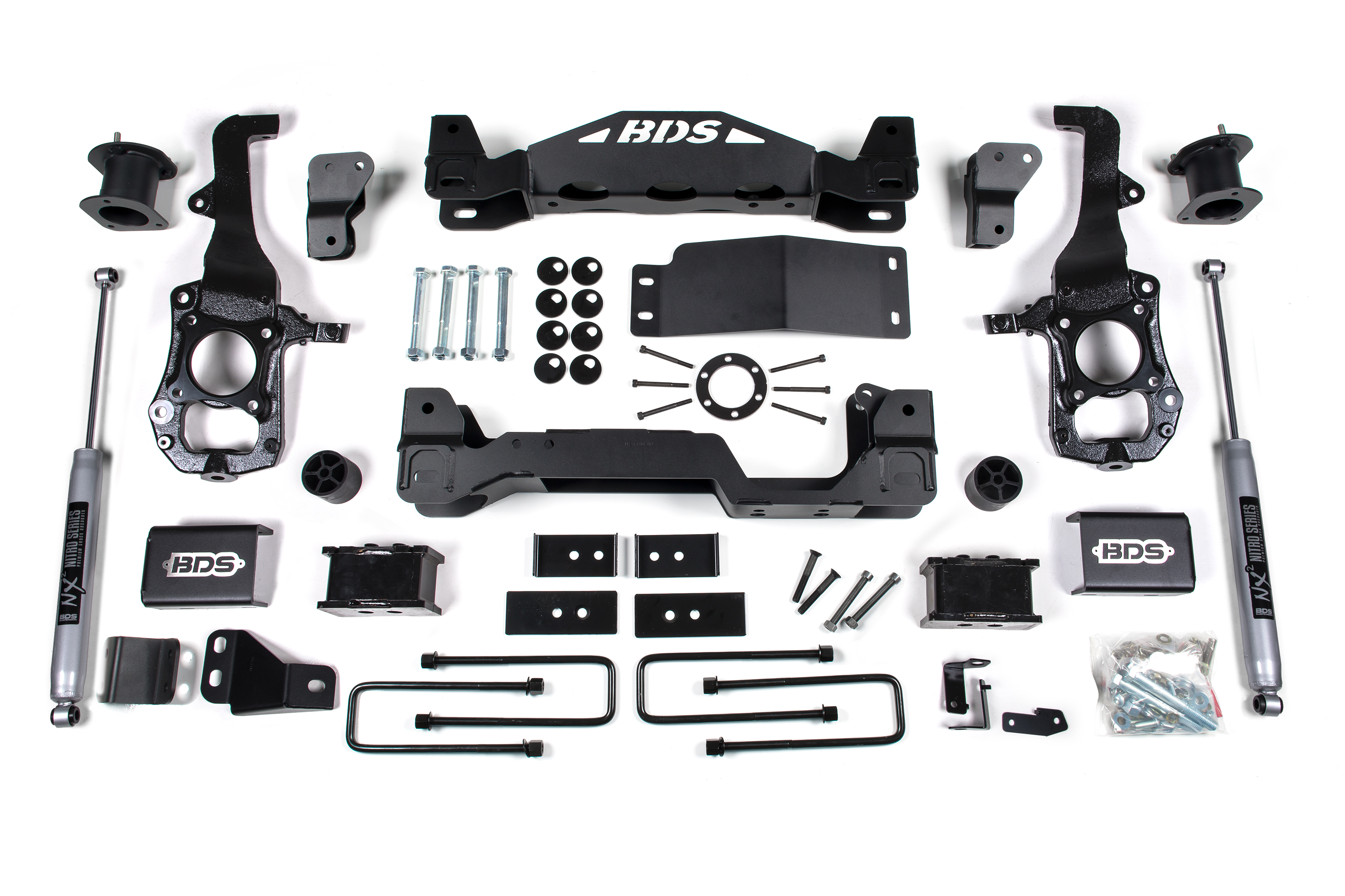 BDS steps up the performance and capability of the 2021-2024 Ford F150 trucks with 4-inch suspension lift kits. Designed to improve stance, performance, and capability, this kit includes everything necessary to set your truck up right with clearance for up to 35 inch Tires.