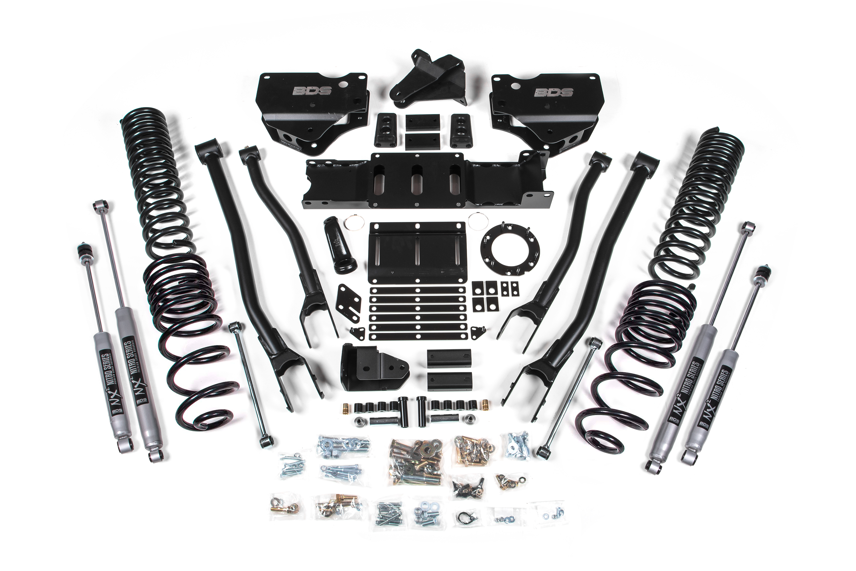 Built to outperform, BDS Suspension engineered a 4-inch lift kit with 4-Link conversion for your 2019-2024 RAM 2500 gas powered truck that will surely impress. Designed to improve stance, performance, and capability, this kit includes everything necessary to set your truck up right with clearance for up to 35 inch Tires.