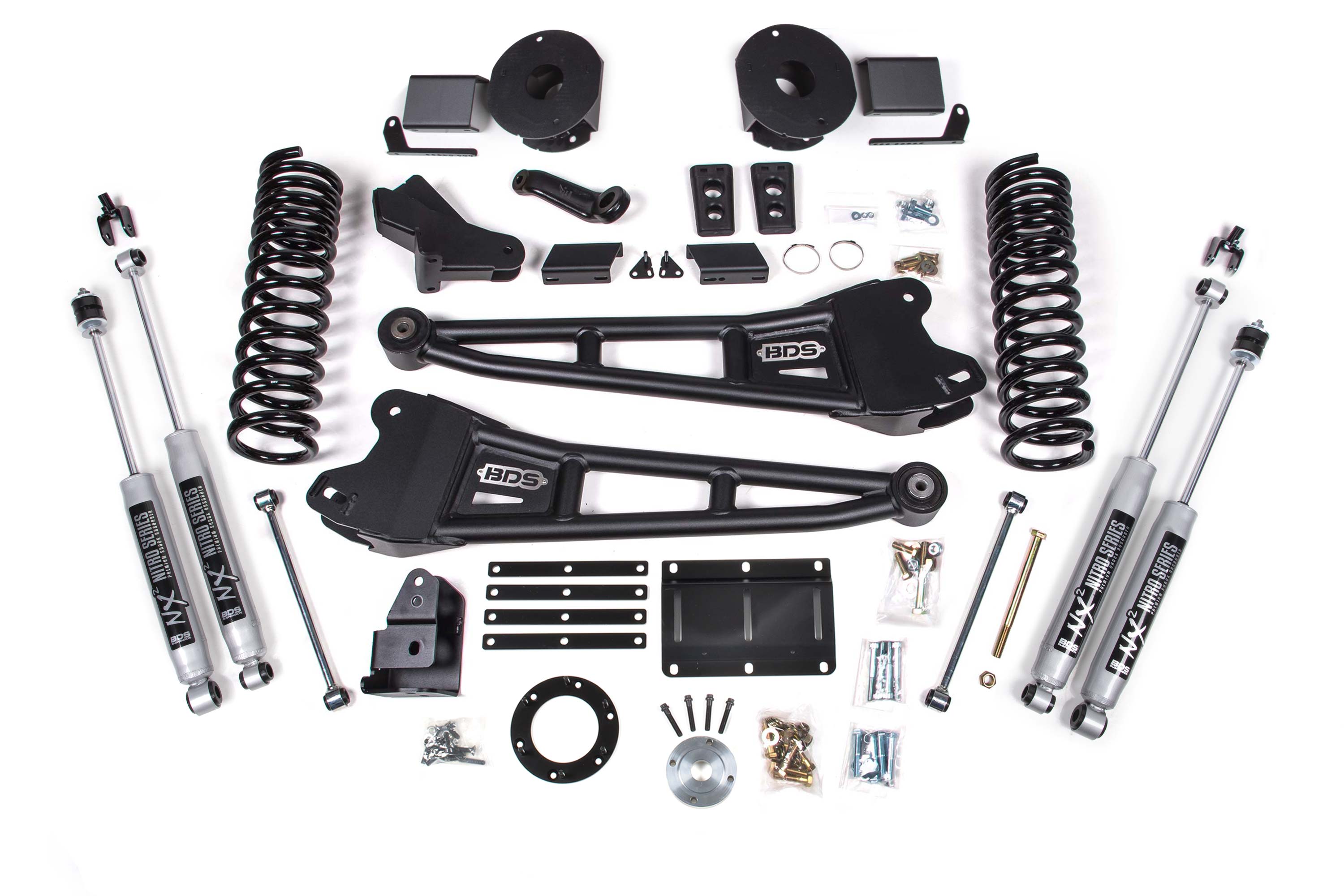 Built to outperform, BDS Suspension engineered a 6-inch lift kit with radius arm for your 2014-2018 RAM 2500 diesel powered truck that will surely impress. Designed to improve stance, performance, and capability, this kit includes everything necessary to set your truck up right with clearance for up to 37 Inch Tires.