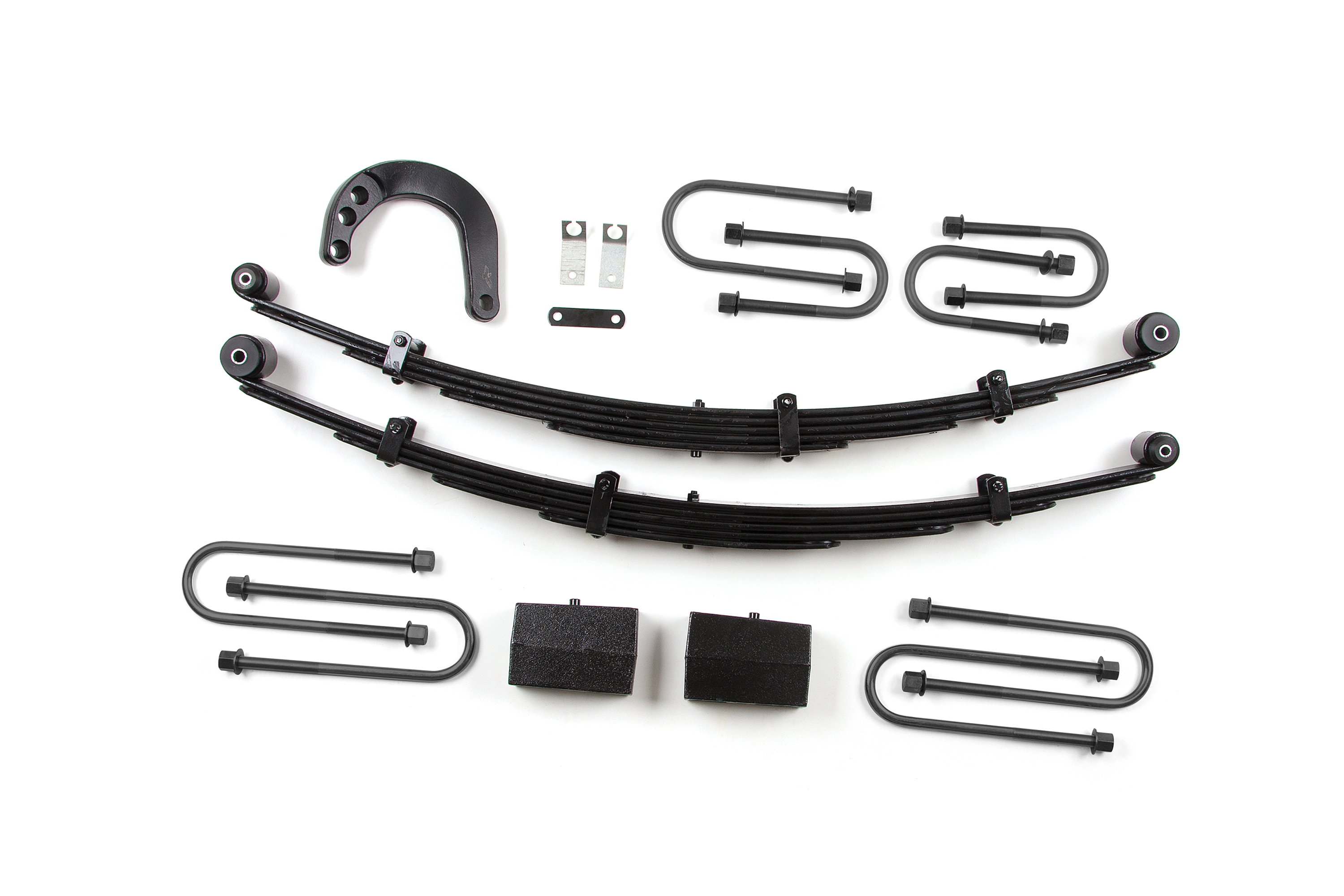 - Heavy-duty replacement front leaf springs provide lift and great ride quality.