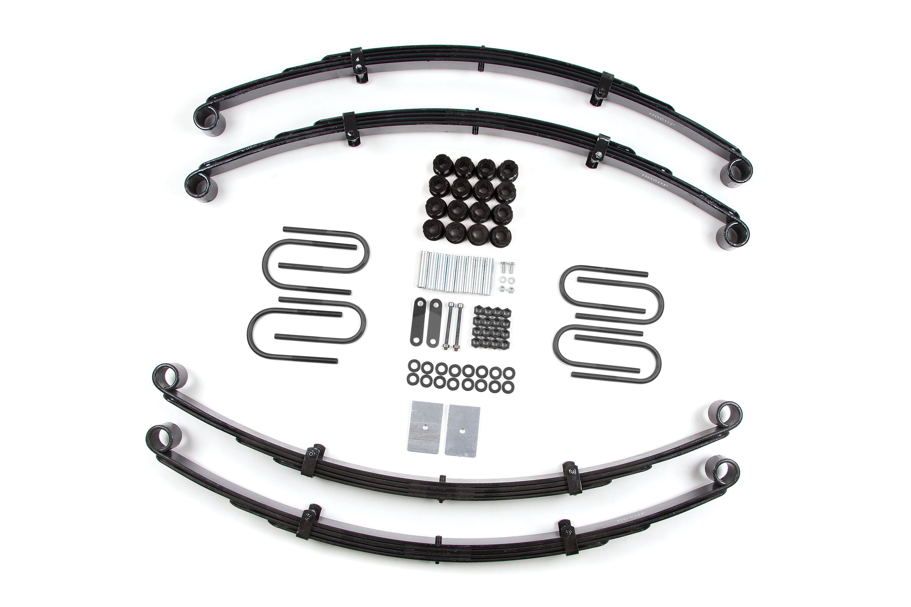 - Heavy-duty replacement front and rear leaf springs provide lift and great ride quality.