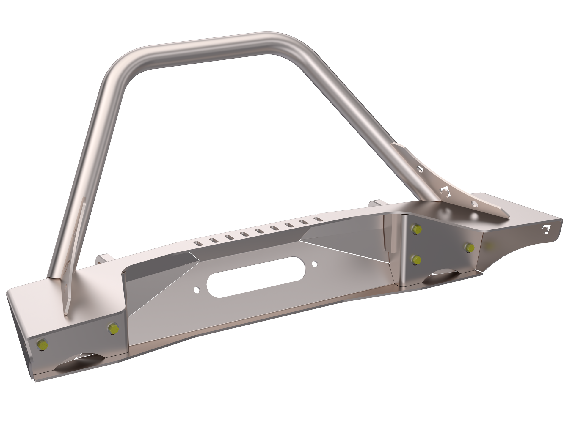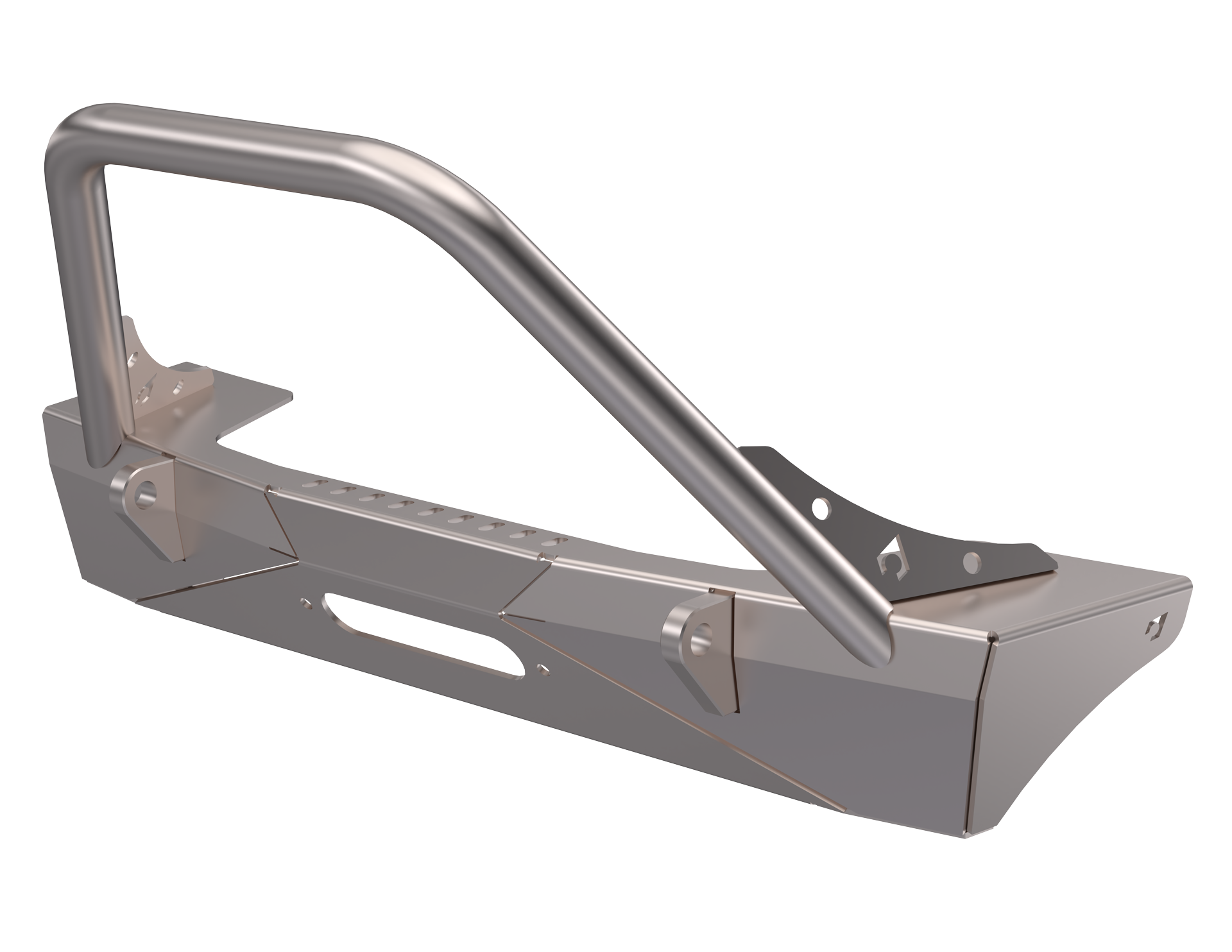 An integrated tube stinger adds an added layer of protection up front while maintaining a clean, purposeful stance. The bumper supports a recessed winch mount option (JL5611) and includes an integrated fairlead opening to help keep the winch protected and positioned for optimal pulling angles.