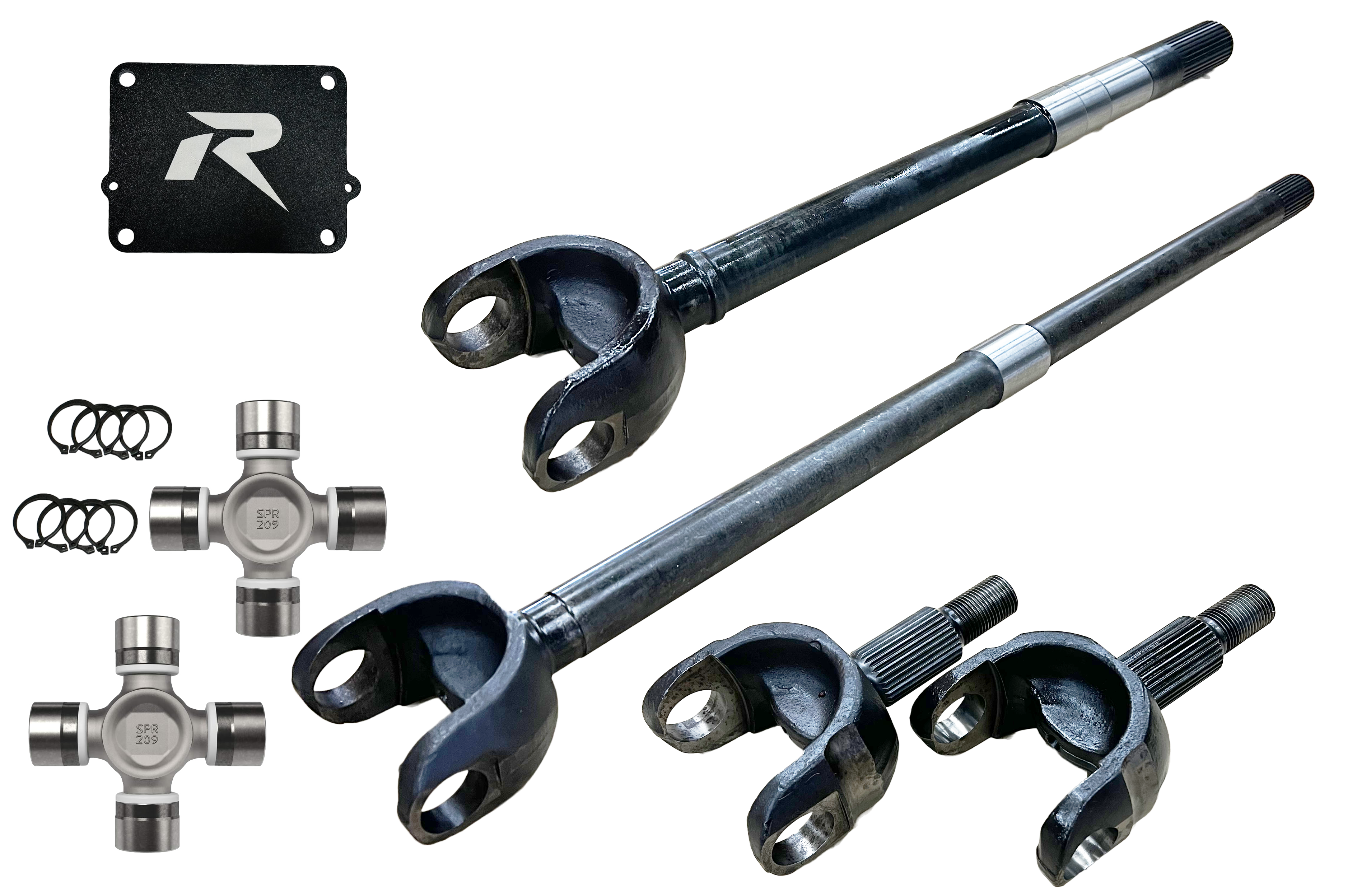 Revolution Gear and Axle Discovery Series 4340 Chromoly Front Axle Kit, fits 2018+ Jeep Wrangler JL and Gladiator JT models with Dana 44/M210 wide-track front axle, only works with the factory 32 spline locker. This front axle kit was developed with a single passenger side inner axle to eliminate the front axle disconnect (FAD) and intermediate axle creating the strongest setup. We added even more strength by utilizing larger Spicer 1410X u-joints.